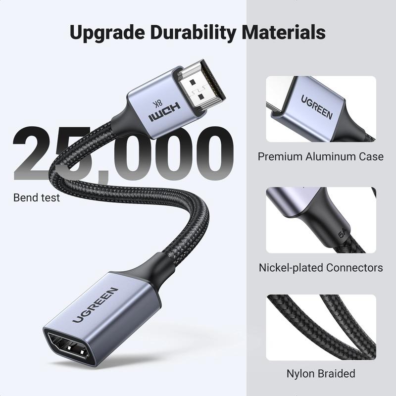 Ugreen HD165 8K HDMI Male to Female Extension Cable - 15 cm, 48 Gbps