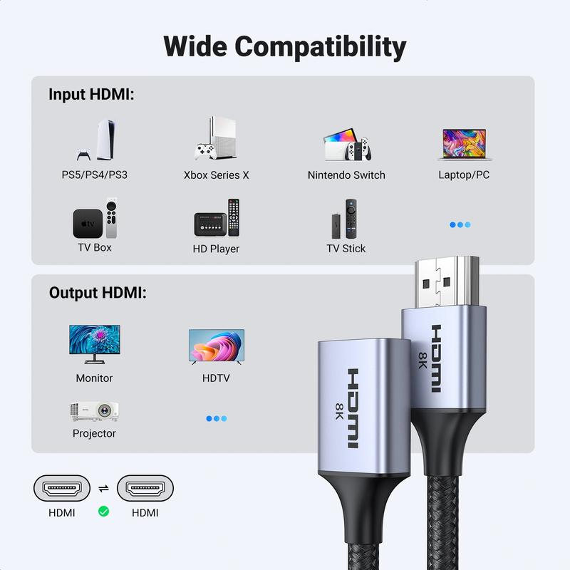 This HDMI extension cable offers a simple way to protect device ports and improve cable routing while maintaining full 8K performance. Its high bandwidth, durable construction, and compact size make it a dependable choice for modern displays and high-refresh-rate gaming without adding clutter.