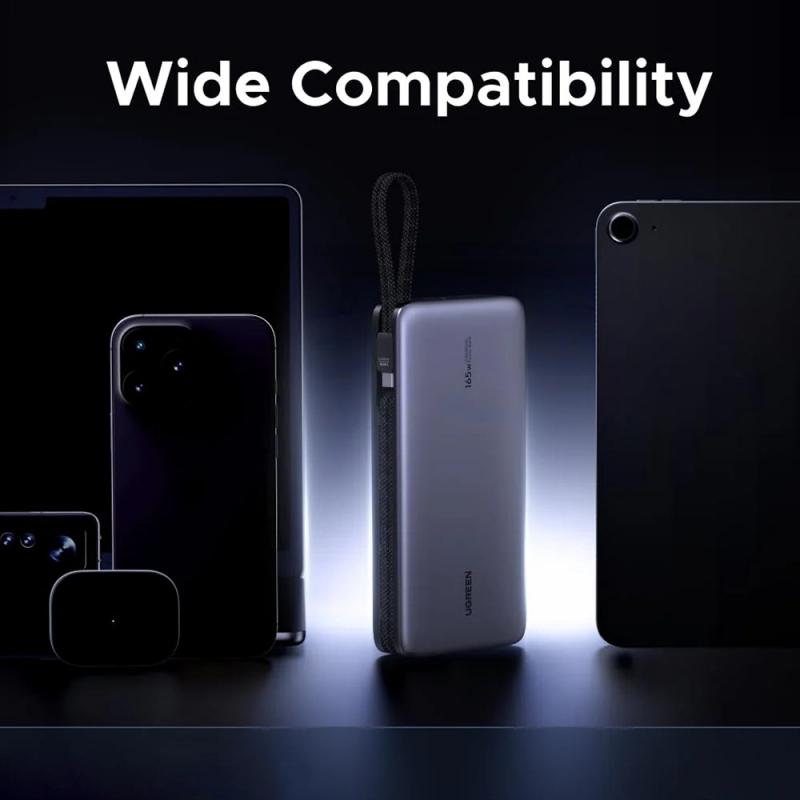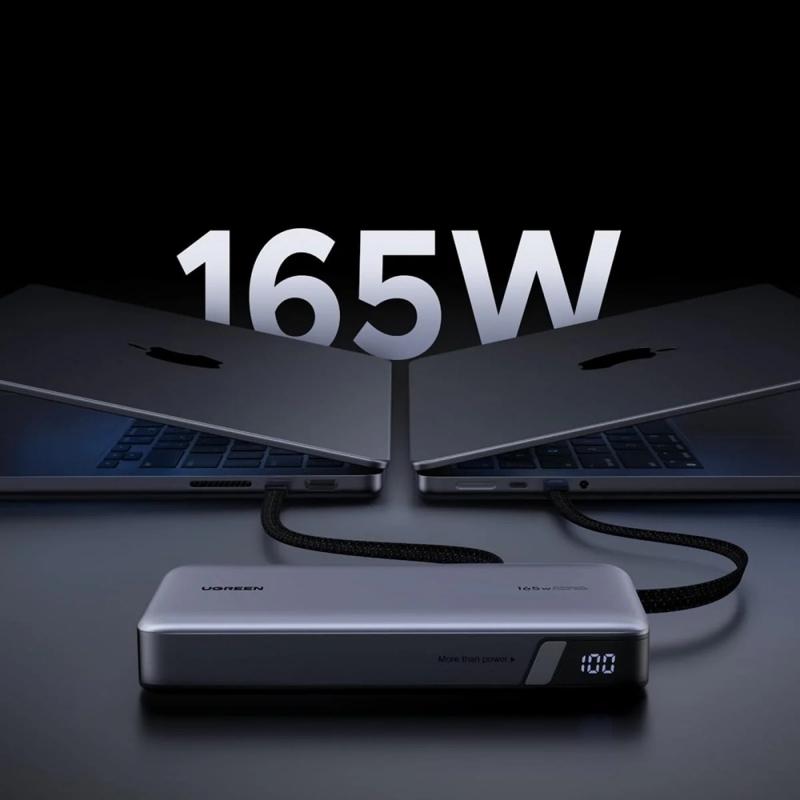 The Ugreen PB552 is a high-performance power bank built for heavy users who need serious power away from the socket. With a 25000mAh capacity and up to 165W total output, it can charge laptops, tablets, smartphones, and accessories efficiently during travel, remote work, meetings, and long days on the move. Two built-in USB-C cables keep your setup clean and ready, and the ability to charge up to four devices at once makes it a reliable all-in-one charging hub you can carry.