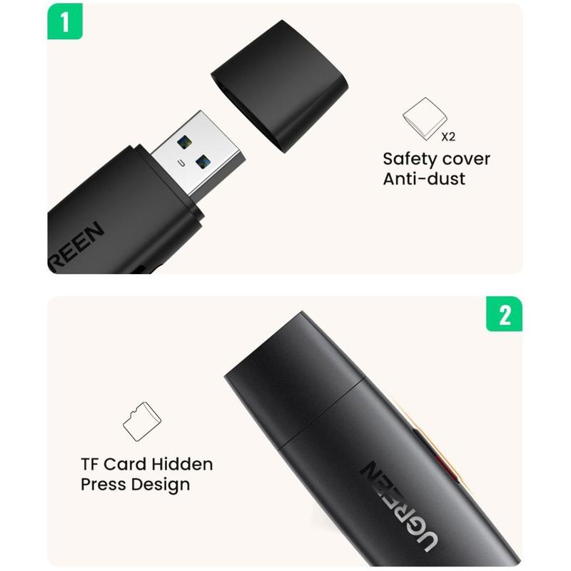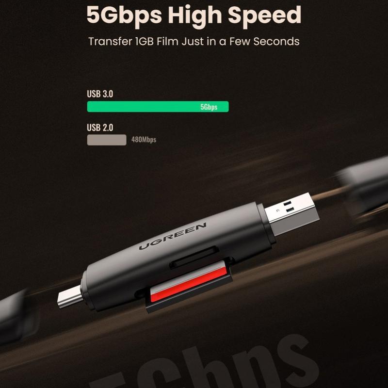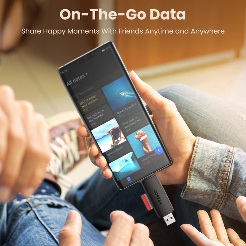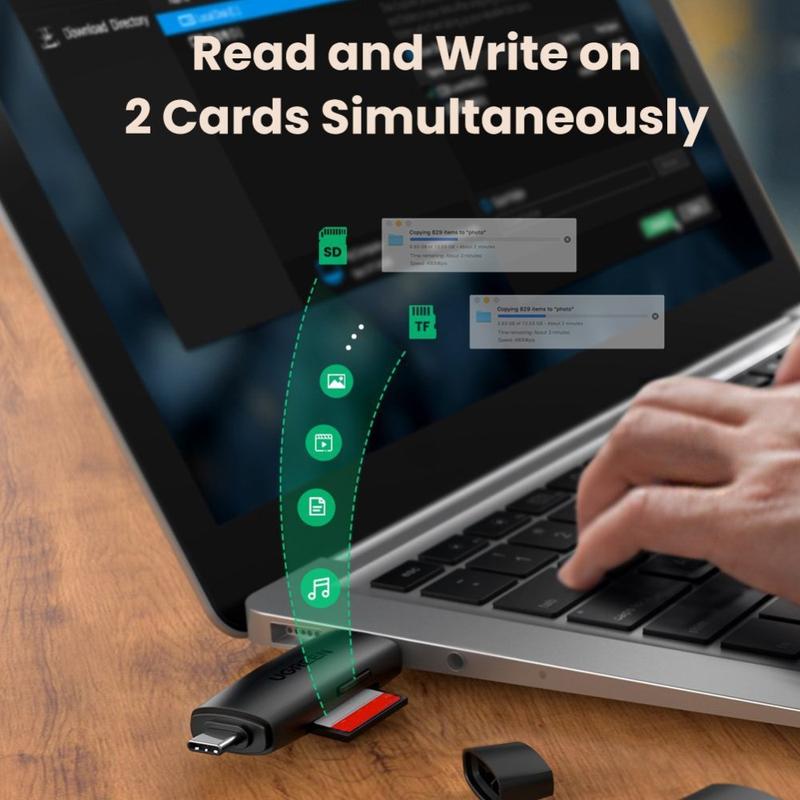 Transfer photos and videos faster wherever you are with the UGREEN 2-in-1 SD and microSD card reader. Built with both USB-A and USB-C connectors, it works with a wide range of laptops, PCs, and OTG-enabled phones and tablets, making it ideal for travel, content creation, and quick backups. Dual card slots let you read and write SD and microSD cards at the same time, so you can copy files, preview content, or move data between cards without swapping adapters.