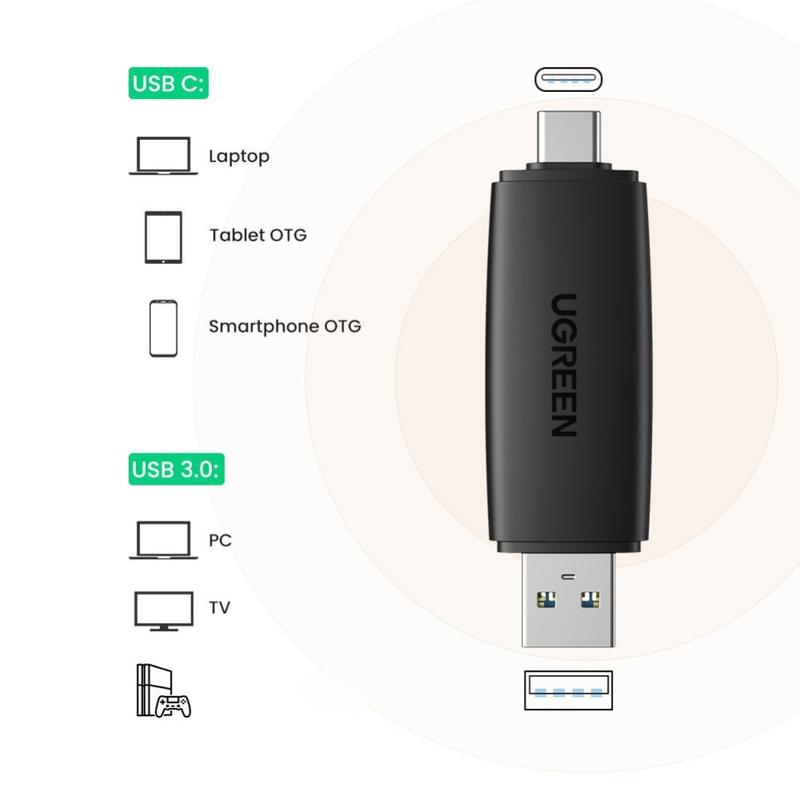 Ugreen USB-C and USB-A SD microSD Card Reader 5Gbps - 2-in-1 OTG Adapter with Dual Slots