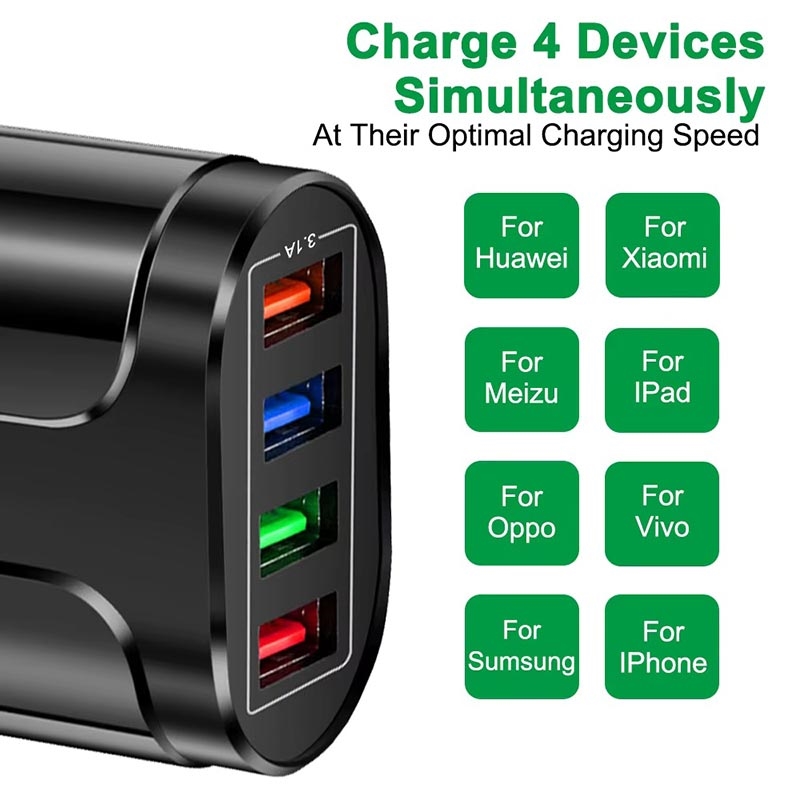 Thanks to the built-in smart chip, the universal 4-port USB power adapter charges your devices faster and more stable. It is equipped with 4 USB output ports, so you can quickly charge up to four devices simultaneously. Because of its lightweight and compact size, you can take it everywhere.