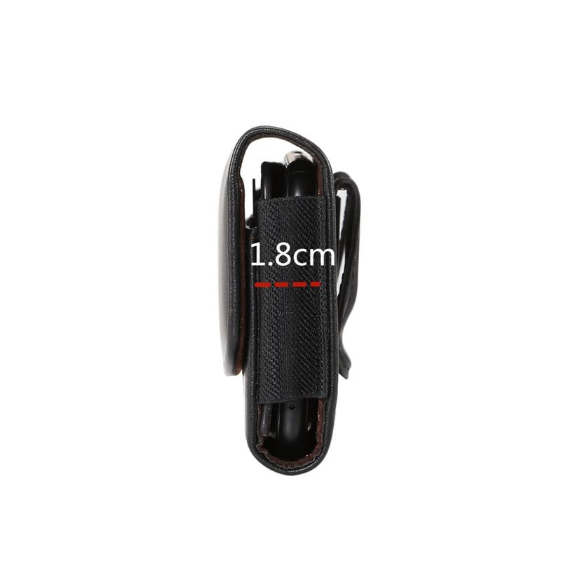 - Belt loop + metal snap-fastener for secure attachment to belt or waistband
