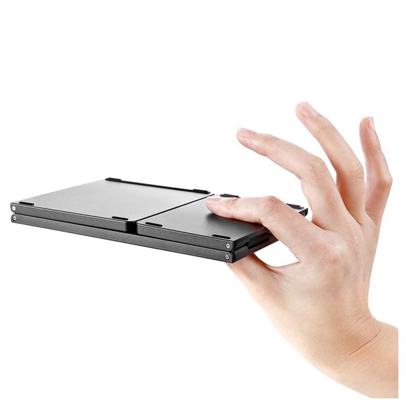 Small and thin, this universal Bluetooth keyboard with touchpad can always be with you. Its foldable design makes it very compact and easy to carry anywhere. Bluetooth technology means you don't have to occupy valuable USB ports with wireless receivers. The configuration is easy, and no installation or drivers are required. This ultra-thin double-fold keyboard easily adapts to your bag, and the keys are kept secure inside the durable double-fold construction.
