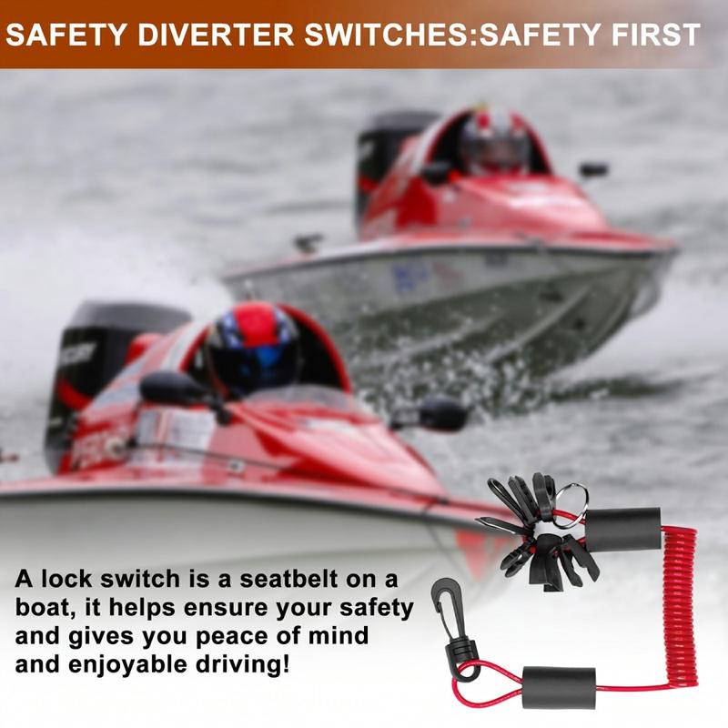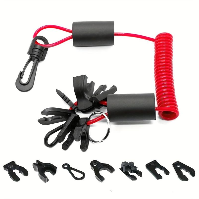 Stay safer on the water with this outboard engine kill switch lanyard designed for boats, jet skis, and other watercraft. The 1.6 m TPU safety cord connects you to the engine cut-off switch, helping the motor stop quickly if you fall overboard or move away from the controls. Made from durable thermoplastic polyurethane (TPU), it offers good elasticity and wear resistance for marine use. The bright red colour improves visibility in emergency situations, while the swivel hook helps prevent tangling and keeps attachment secure. The set includes 7 kill switch keys for broad compatibility and 2 floating bubbles to help keep the lanyard easy to spot on the water surface.