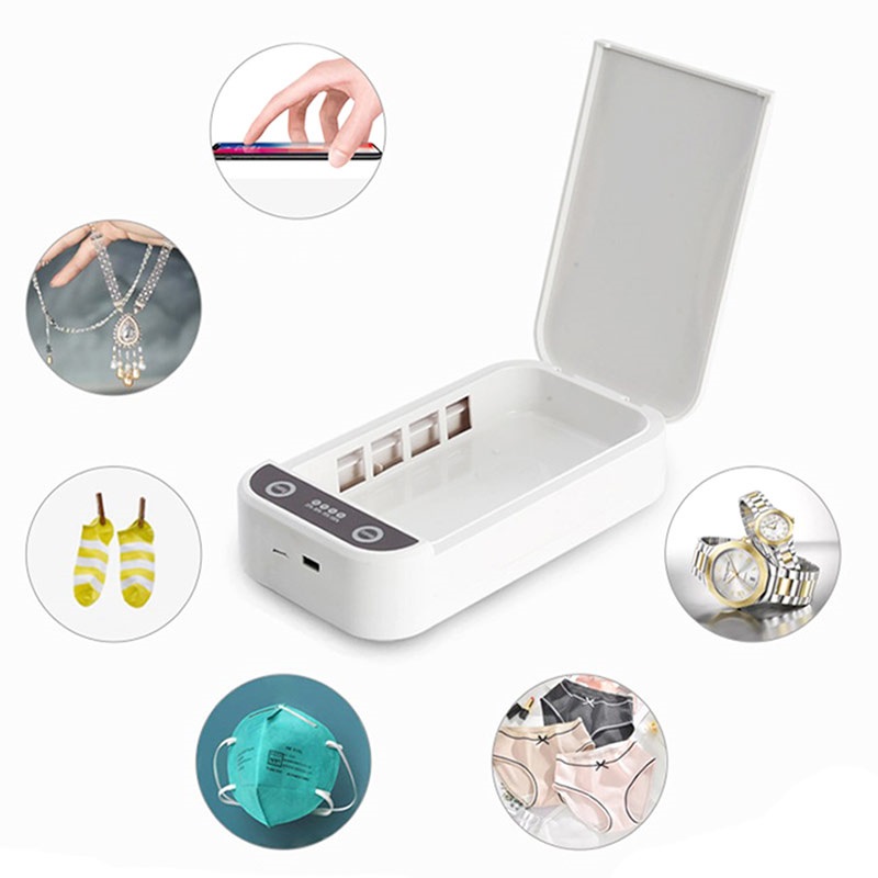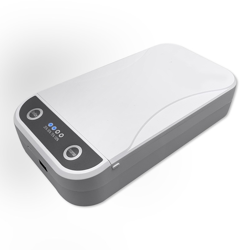 It reduces the number of germs, viruses, and bacteria on your everyday objects to a minimum. It's perfect for smartphones, watches, jewelry, or smaller pieces of clothing. It's very simple to use - just press one of the two easy-to-reach buttons, and you're ready to go.