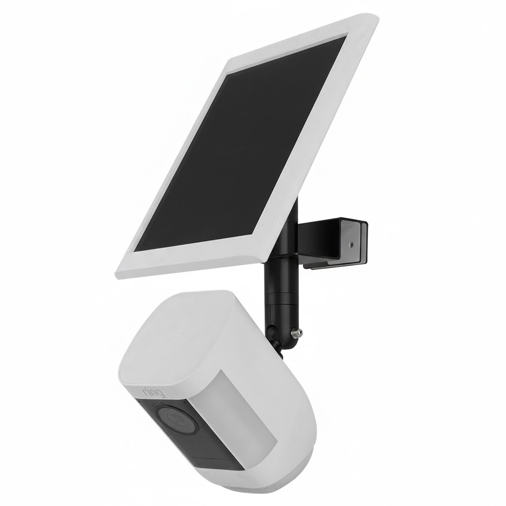 Equipped with interchangeable adapter bases, the mount is compatible with popular devices from Arlo, EufyCam and Ring, including camera heads and matching solar panels. This makes it a versatile choice for mixed or upgraded security setups.