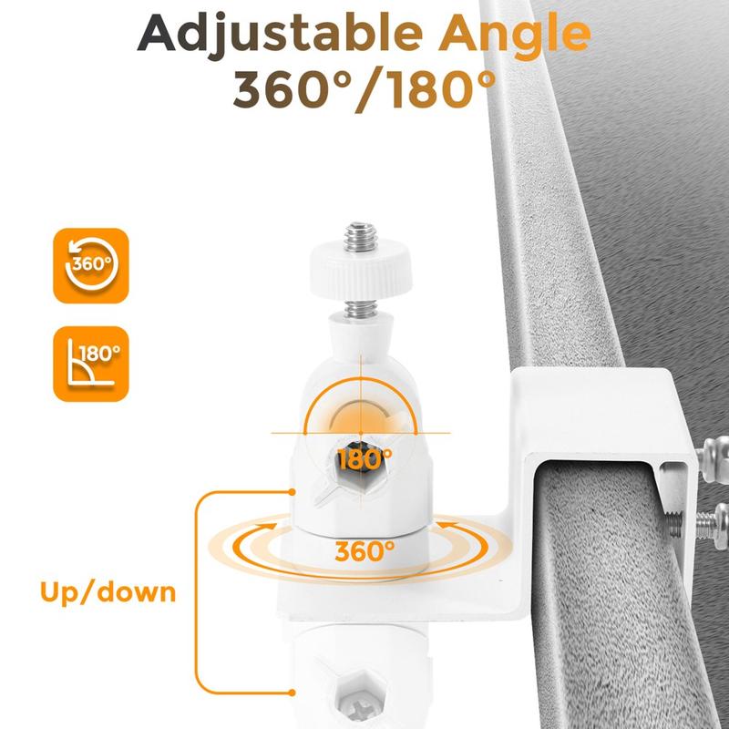 Universal Security Camera Railing and Gutter Mount - 360° Adjustable Aluminum Pan-Tilt Bracket with 1/4" Screw