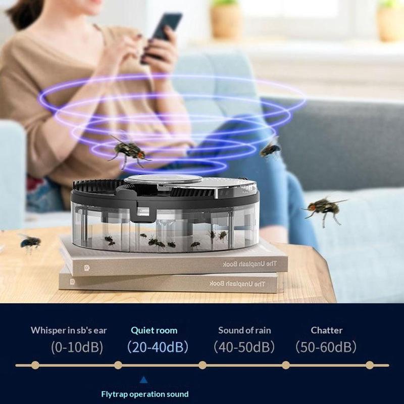 Keep indoor spaces more comfortable and hygienic with this USB rechargeable automatic rotating fly trap. Designed for quiet and practical everyday use, this household fly catcher uses a physical trapping method with rotating suction technology to help capture flying insects without relying on strong odours or more complicated setups. It is a useful solution for kitchens, dining areas, caf s, food preparation spaces, and other indoor environments where flies can be a nuisance.