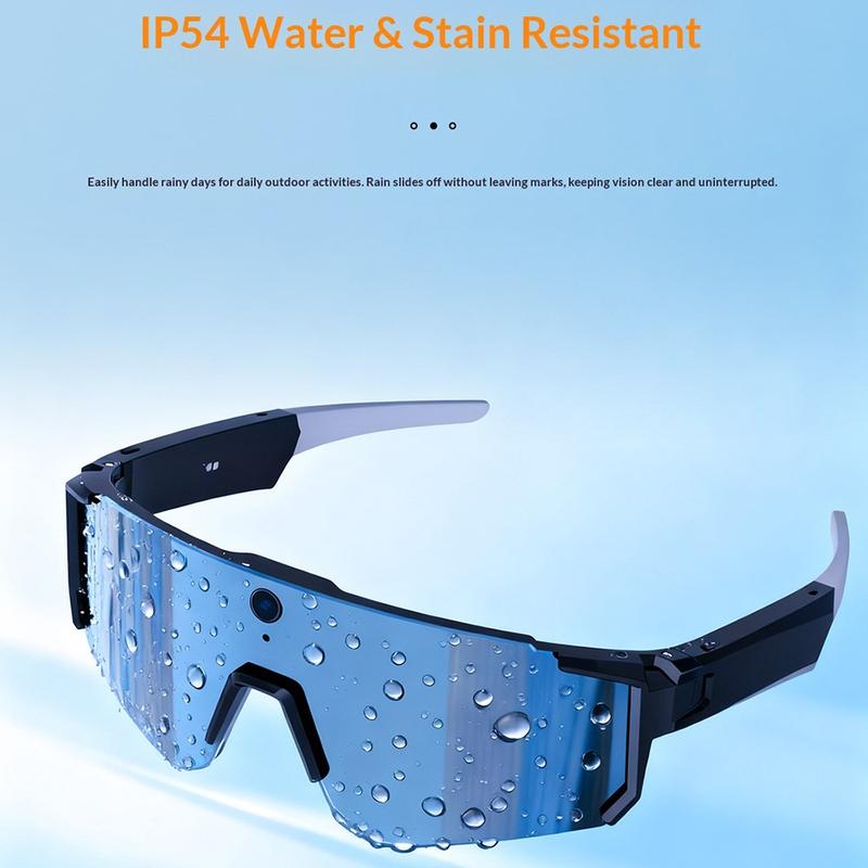 Designed for outdoor use, the glasses are IP54 water- and dust-resistant, making them suitable for cycling, travel, and daily use in changing weather conditions.