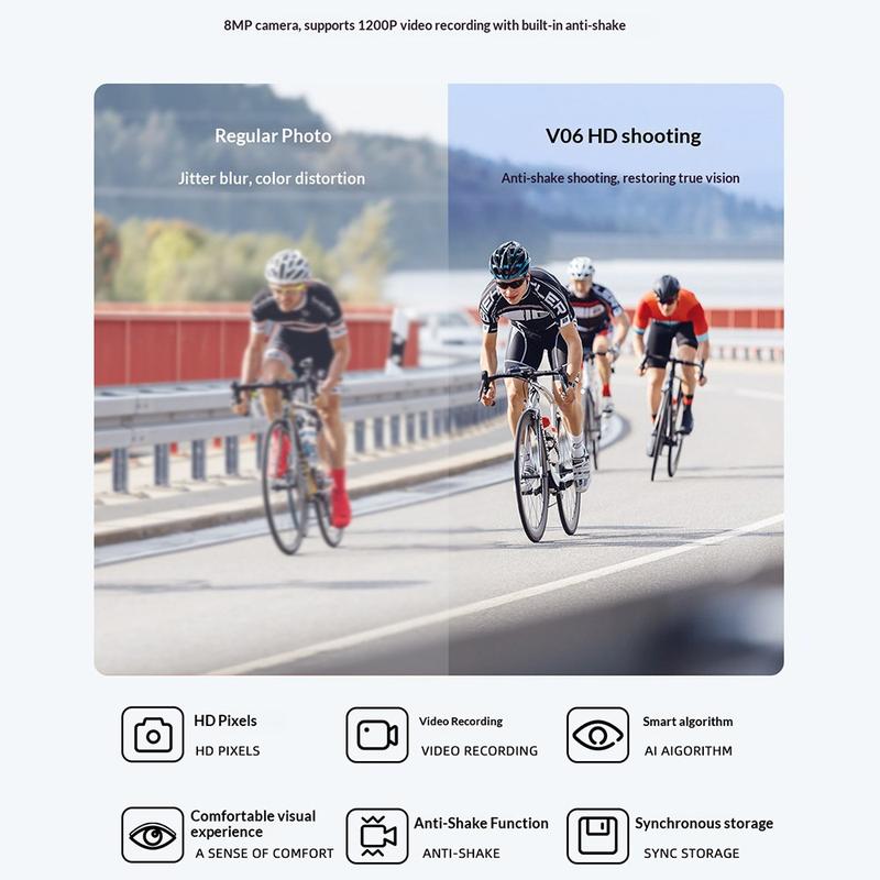The V06 AI smart glasses use advanced image enhancement to improve your recordings in real-life conditions. Features such as low-light brightening, background blur, and multi-frame noise reduction help produce clearer, more balanced footage-ideal for outdoor activities and everyday moments.