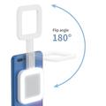 The lamp head flips up to 180 so you can angle the light exactly where you need it. With stepless brightness and color temperature adjustment from warm to cool tones, you can quickly adapt the lighting for makeup, live streaming, photography, or video meetings. The built-in stand also allows your phone to rest securely for hands-free viewing or recording.