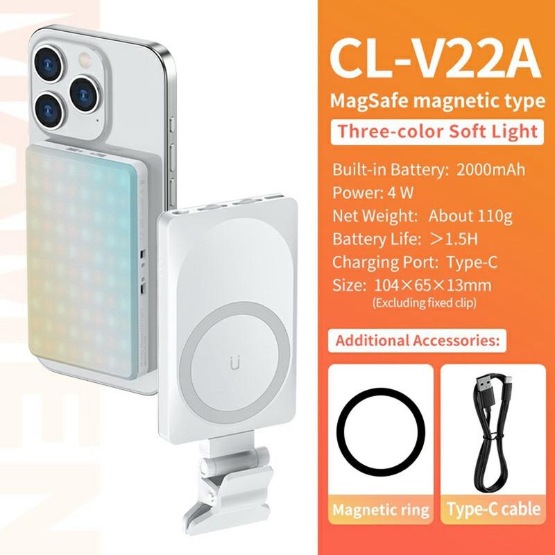 The V22A Portable Magnetic LED Fill Light delivers powerful, accurate lighting in a compact design ideal for smartphones, cameras and streaming setups. With Type-C charging, adjustable brightness and a wide color temperature range, it ensures excellent results whether you're filming indoors, outdoors or on the move.