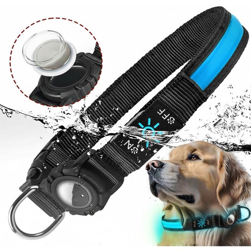 LED Dog Collar with Case for Apple AirTag 1/2 - Waterproof Anti-Lost Collar with Rechargeable Light
