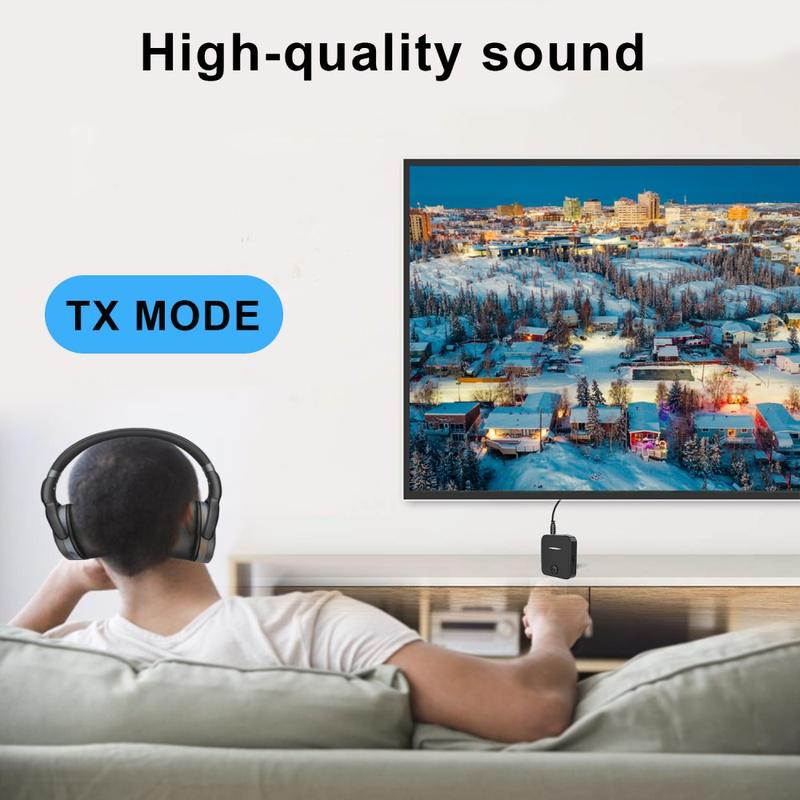 In TX mode, the adapter sends audio from non-Bluetooth devices such as TVs, MP3 players, DVD players or PCs to Bluetooth headphones or speakers. Ideal for late-night TV watching without disturbing others.