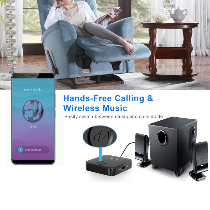 In RX mode, it transforms any wired speaker, car audio system or headphones into Bluetooth-enabled devices for wireless music streaming from your phone or tablet.