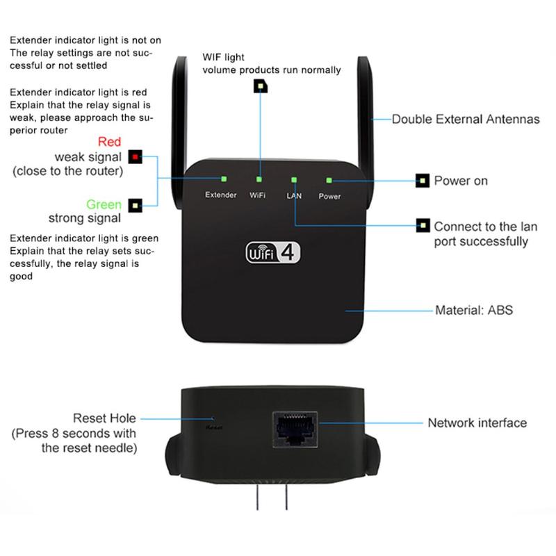 - WiFi extender with up to 300Mbps wireless speed