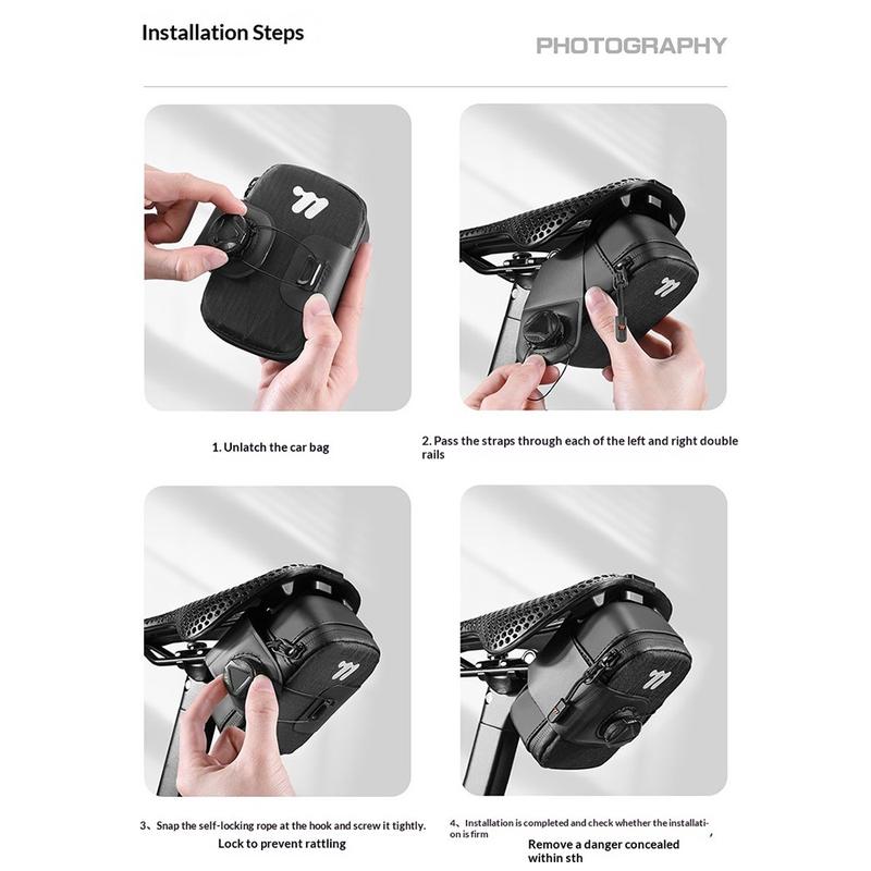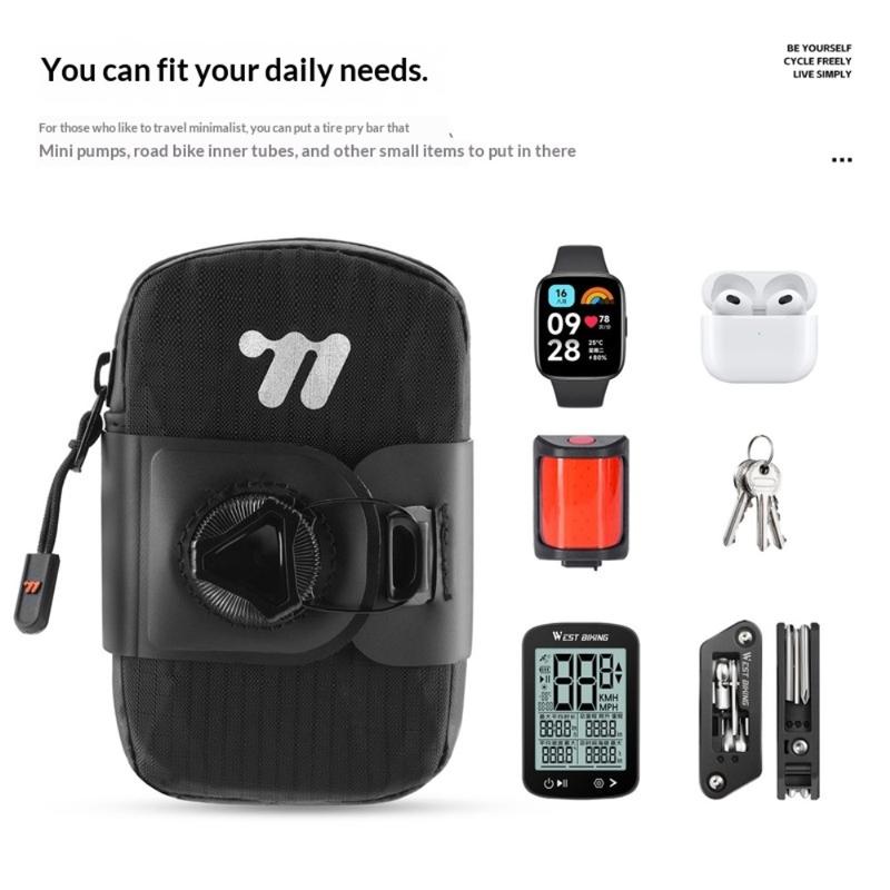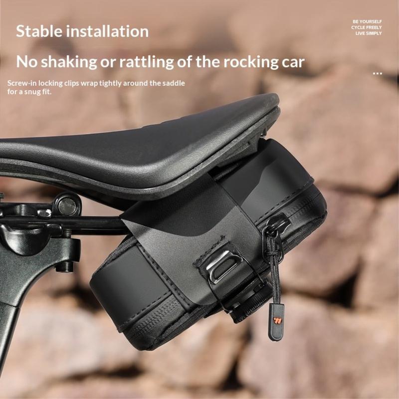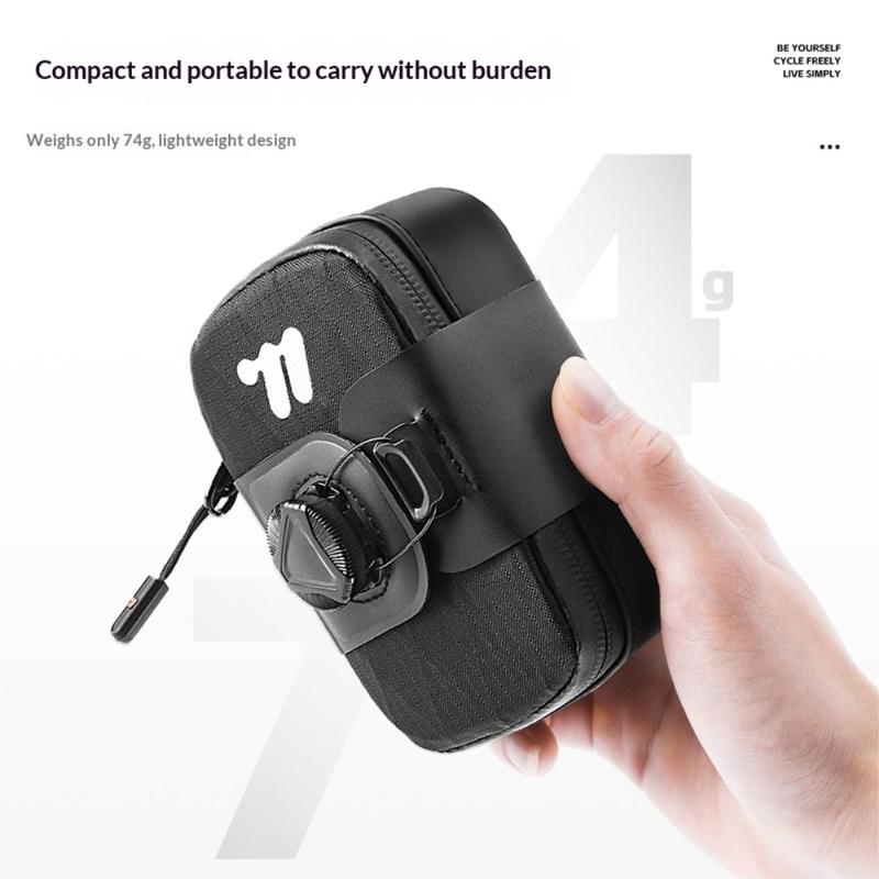 The West Biking YP0707431 0.2 L bicycle saddle bag is a compact and ultra-light storage solution designed for cyclists who value stability and minimal weight. Featuring a self-locking twist mechanism and quick-release system, this tail bag mounts securely under your saddle without wobbling or noise. Made from durable UHMWPE ripstop fabric, it offers excellent scratch resistance and long-lasting performance for both road and mountain biking.
