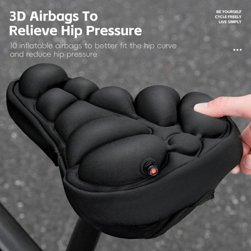 Boost comfort on every ride with the West Biking YP0801259 Inflatable 3D Air Cushion bike seat cover. This lightweight saddle pad uses 3D air cushion technology to help distribute pressure more evenly, reducing discomfort during longer rides. With an adjustable air valve, you can fine-tune firmness to your preference, while the ventilated grooved design improves airflow and heat dissipation. Anti-slip particles and a secure magic tape strap help keep it stable on both road and mountain bikes.