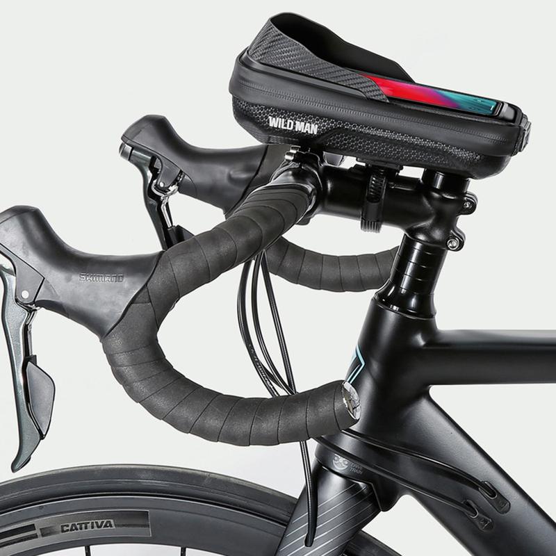 The WILD MAN E16 bike storage bag is a practical cycling accessory designed to keep your essentials protected, organised, and easy to access while riding. Built from a hard EVA + PU shell, it offers strong shape retention, water repellence, and resistance to daily wear. The integrated TPU touch screen film lets you use navigation apps or maps directly through the pouch, while the sun visor design improves screen visibility in bright daylight. With a 0.5 L capacity, it provides enough space for your phone and small essentials without getting in the way of steering—ideal for commuting, road cycling, or longer rides.