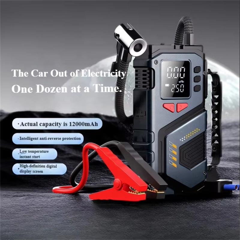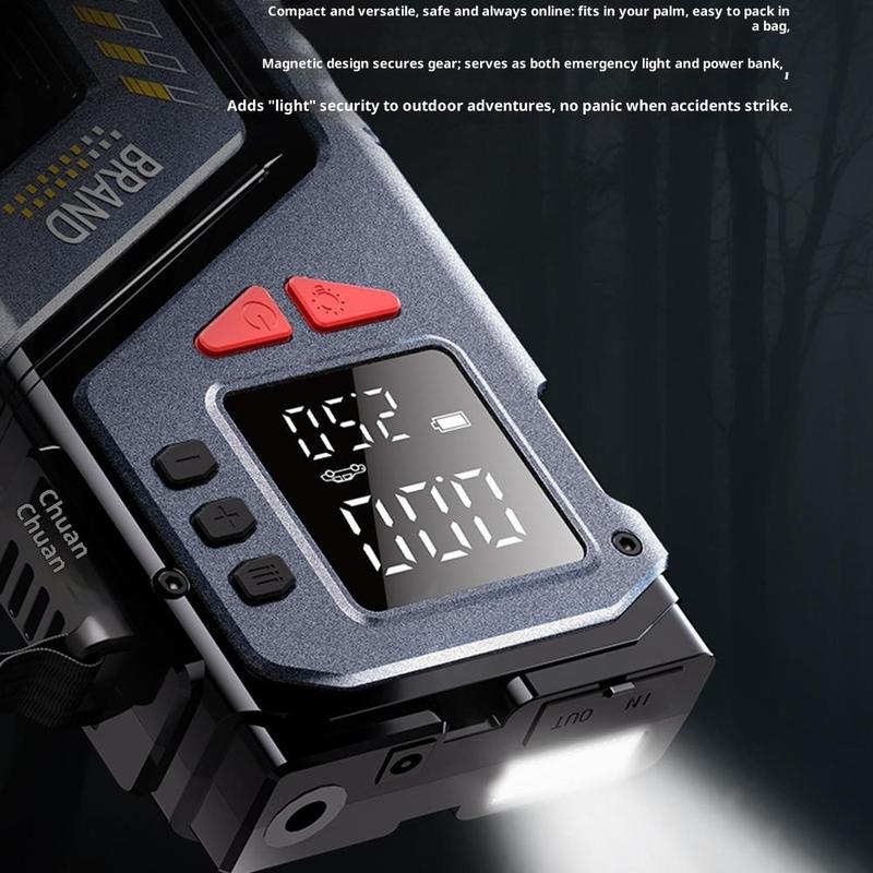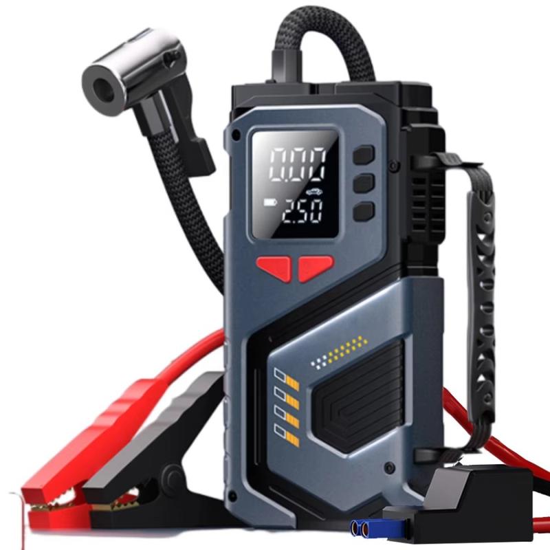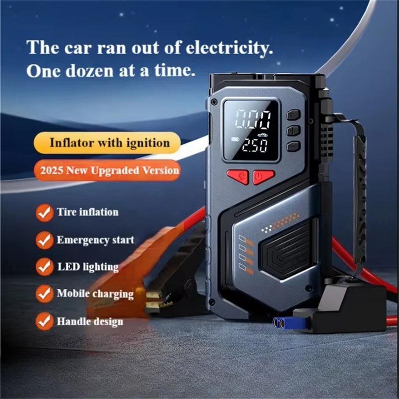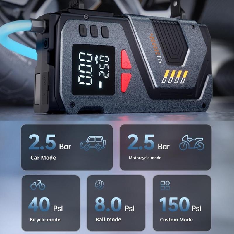The H06 multifunction car device combines a wireless air pump, emergency jump starter, and LED flashlight, giving you a complete roadside solution in one compact and portable unit. Perfect for cars, electric vehicles, bicycles and outdoor emergencies.