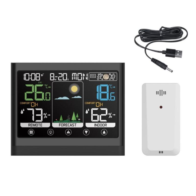 Weather clocks with wireless sensors are popular because they combine several everyday functions into one easy-to-read display. Models with colour screens are especially valued for better visibility and quicker data reading, while multi-sensor support is useful for people who want to monitor more than one area at the same time. Comfort indicators and moon phase displays are also common extras that make these devices more useful than a standard clock or thermometer.