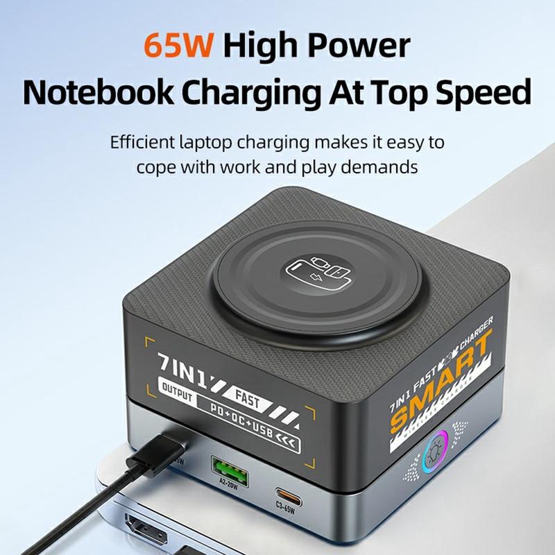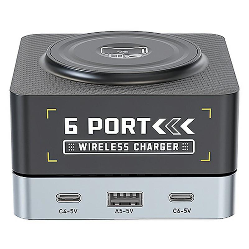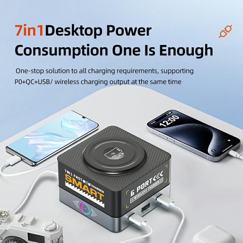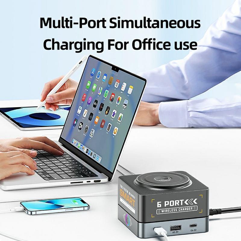7-in-1 Charging with 6 Ports + Magnetic Wireless Pad