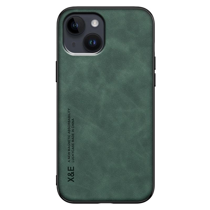 X&E For iPhone 14 Plus Skin-touch Feeling Leather Coated TPU Phone Case Protective Cell Phone Back Cover with Built-in Metal Sheet