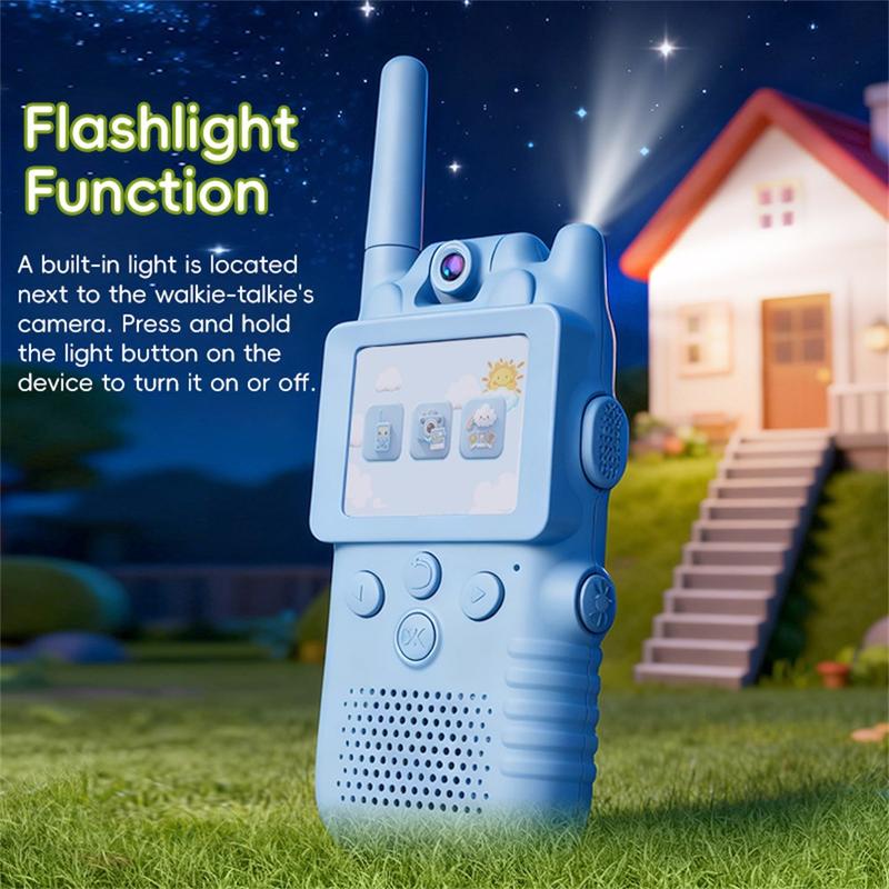 The 180 rotating camera allows kids to switch angles more easily and capture different views during play. With no need for WiFi, mobile data, or a SIM card, the devices support direct real-time communication for simple and convenient use indoors or outdoors. The built-in flashlight adds extra fun and practicality for evening play or small adventures, while photo storage lets children save and review their favourite moments.