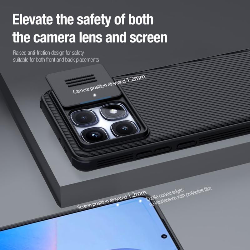 Enjoy extra privacy and protection with the Nillkin CamShield Pro hybrid case. Combining rigid plastic and TPU, the camera cover prevents scratches while defending your Xiaomi Redmi K70 Ultra from daily wear and tear.