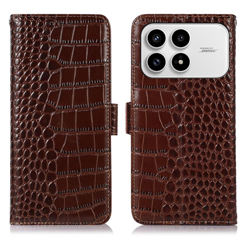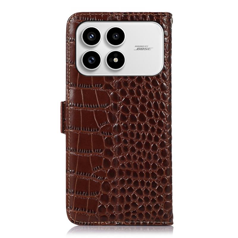 A lightweight and soft wallet case with a unique crocodile texture, the perfect choice to protect your Xiaomi Redmi K90, Poco F8 Pro and keep it undamaged. It's made of high-quality genuine leather and inner TPU material, designed with three card slots, an ID slot, and a pocket for cash, ideal for carrying your essentials next to your Xiaomi Redmi K90, Poco F8 Pro. Also, RFID technology effectively blocks signals and keep's your data secured.