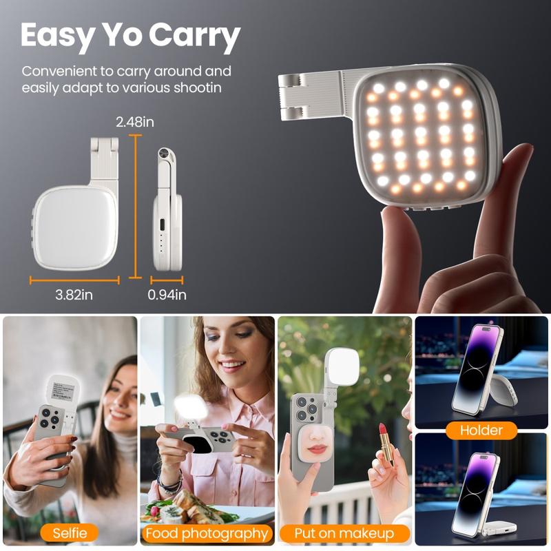 Upgrade your photos, video calls, and live streams with the XJ105 magnetic LED fill light—an ultra-portable lighting tool designed for creators, commuters, and anyone who wants flattering light on demand. The strong magnetic attachment lets you snap it on with one hand without blocking your phone s cameras, and if your phone isn't magnetic, the included magnetic ring solves that in seconds. With 48 LED beads (warm + cool), 3 colour temperature modes, and 10 brightness levels, you can quickly dial in the right look—soft and warm for evening content, neutral for meetings, or cool and crisp for detailed shots. Add the foldable design and multi-angle rotation, and the XJ105 becomes your compact studio light that fits in a pocket.