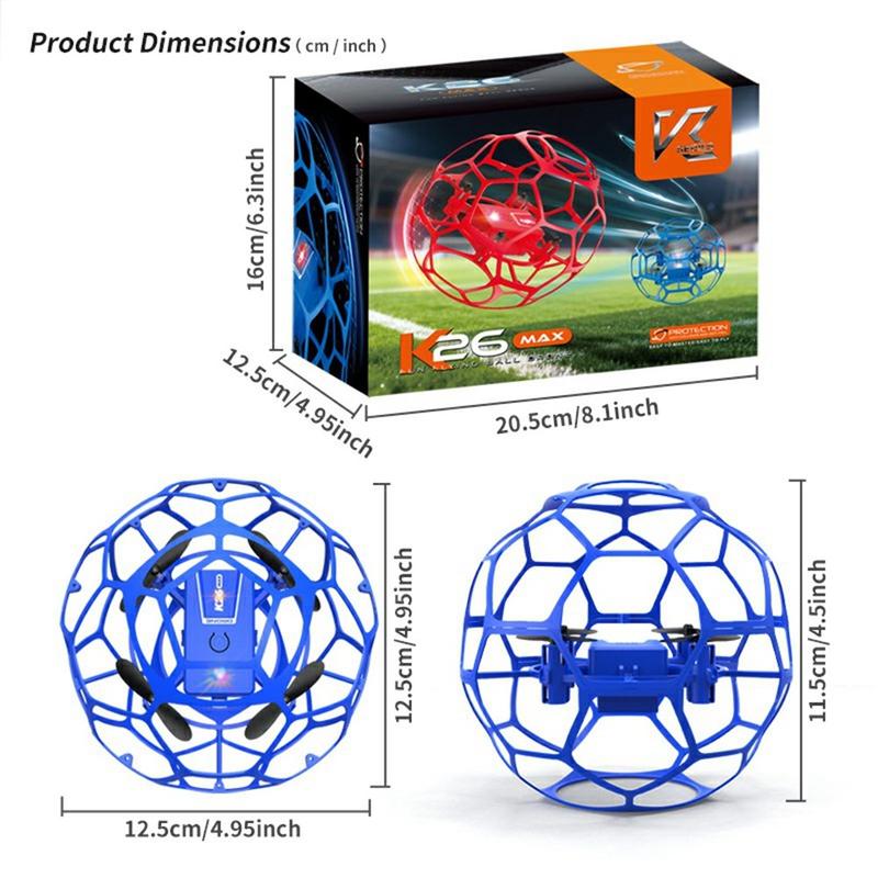 The XKJ K26 football-style drone is a lightweight flying ball quadcopter designed for safe, exciting play. Its spherical protective net structure surrounds the propellers, helping reduce the risk of collisions and making it suitable for children and first-time drone users, both indoors and outdoors.