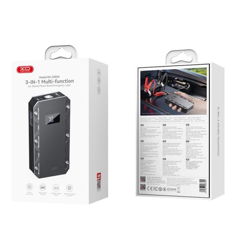 Be ready for dead-battery moments with the XO CZ025: a compact 3-in-1 solution that combines a car jump starter, a portable power bank, and a bright LED flashlight. Built for everyday drivers and travellers, it delivers reliable starting power for 12V vehicles and keeps your phone and gadgets charged via dual USB outputs. The digital display makes it easy to check battery status at a glance, while the multi-mode flashlight (including SOS) is perfect for roadside situations.