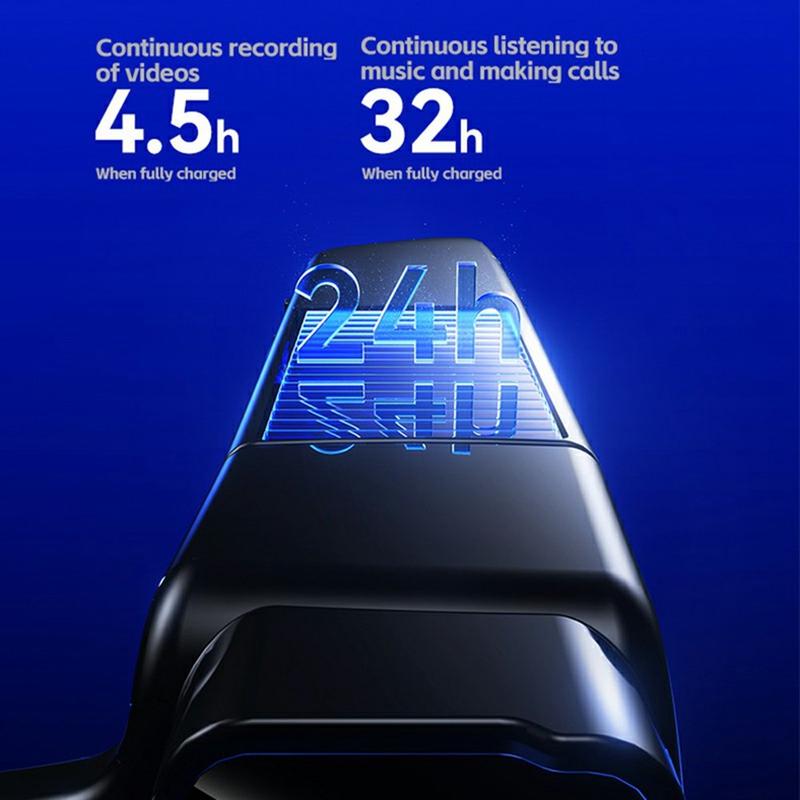 The 2MP camera records 1080p video at 30fps and takes 1920x1080 photos with a 100 diagonal viewing angle for an immersive perspective. A semi-open acoustic structure delivers audio without ear canal pressure, so you can keep environmental awareness while listening to music or taking calls. With Bluetooth-compatible 5.3, USB-C charging, and practical extras like PC-CAM mode and mobile OTG support, it's a versatile smart-wear option for work and everyday adventures.
