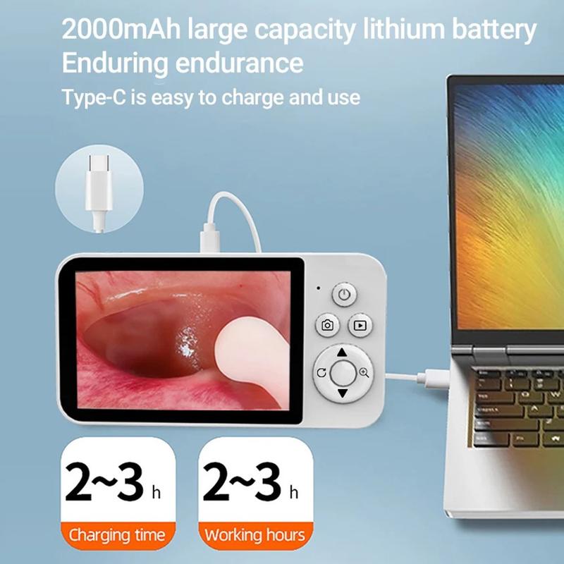 Equipped with a 2000mAh lithium battery, the otoscope offers 3-4 hours of continuous use—ideal for thorough examinations for both adults and children.