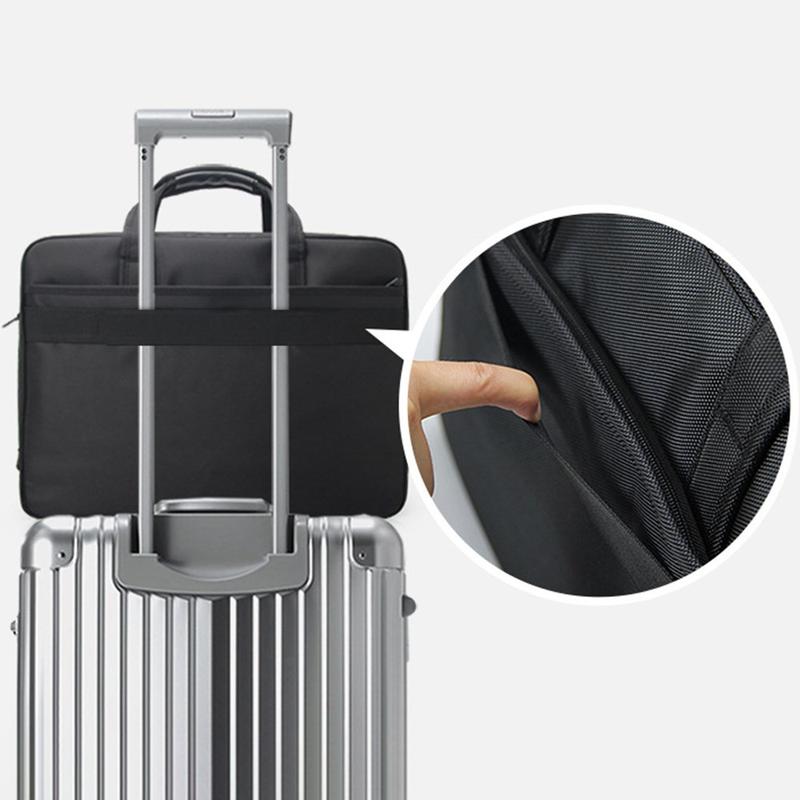 A smooth expansion zipper allows the bag’s capacity to increase when needed—ideal for business trips or days when extra documents and accessories are required. The rear luggage-strap design enables secure attachment to suitcase handles, reducing strain during travel. The sturdy top handle and detachable, adjustable shoulder strap (90-150 cm) offer flexible carrying options for any occasion.