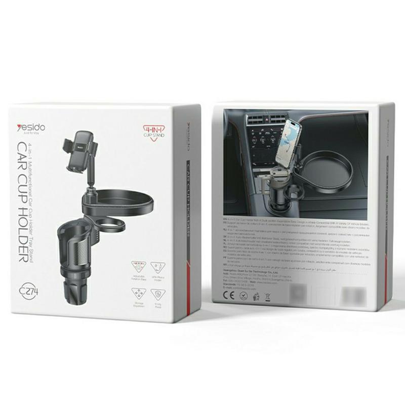Yesido C274 4-in-1 Multifunctional Car Cup Holder Organizer – Food Tray, Expandable Drink Rack & Adjustable Phone Holder