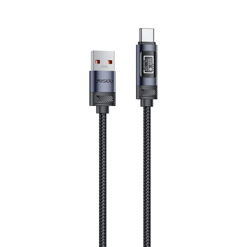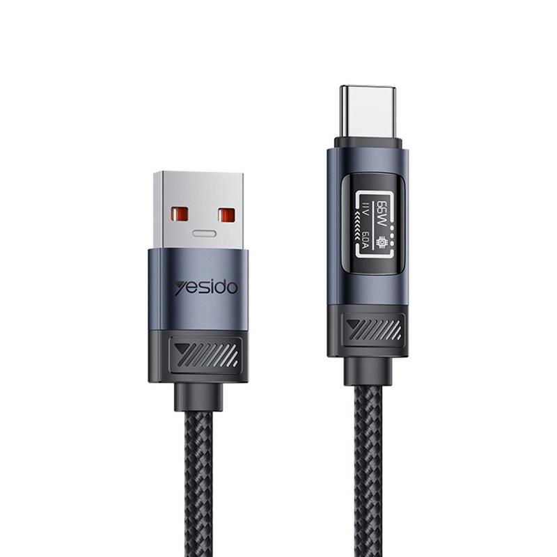Yesido CA138C 66W Fast Charging Cable - USB-A to USB-C Nylon Braided Data Cable with OLED Digital Display - 1.2m