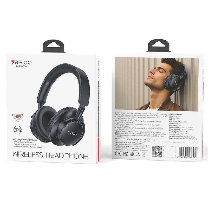 Yesido EP12 Over-Ear Bluetooth Headphones - Zero-Pressure Comfort, Dual Wired/Wireless Mode, Voice Assistant Support