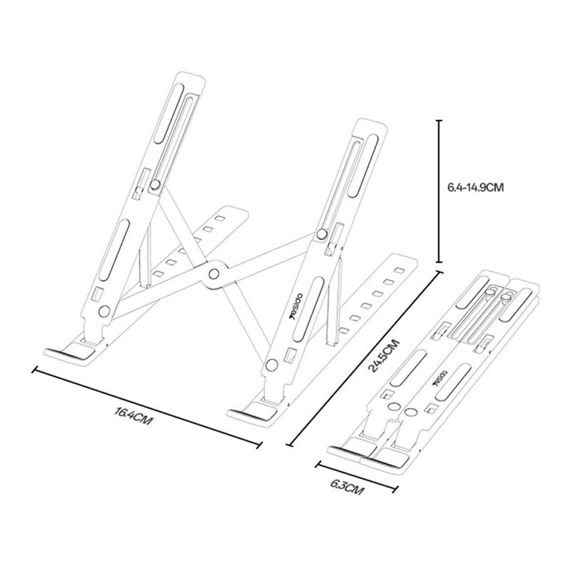 Upgrade your workspace with the YESIDO LP07 laptop stand, a premium adjustable notebook bracket designed for durability, comfort, and style. Crafted from oxidized aluminum alloy, it combines a sleek metallic finish with superior strength to support laptops ranging from 13 to 20 inches. With seven levels of height adjustment, you can effortlessly find the perfect viewing angle, improving posture and reducing neck and back strain during long work sessions. The stand’s silicone padding provides anti-slip stability and protects your laptop from scratches, while its precision-engineered construction offers a premium aesthetic that surpasses typical iron or painted alternatives. Perfect for home, office, or travel, the YESIDO LP07 blends functionality with refined design.