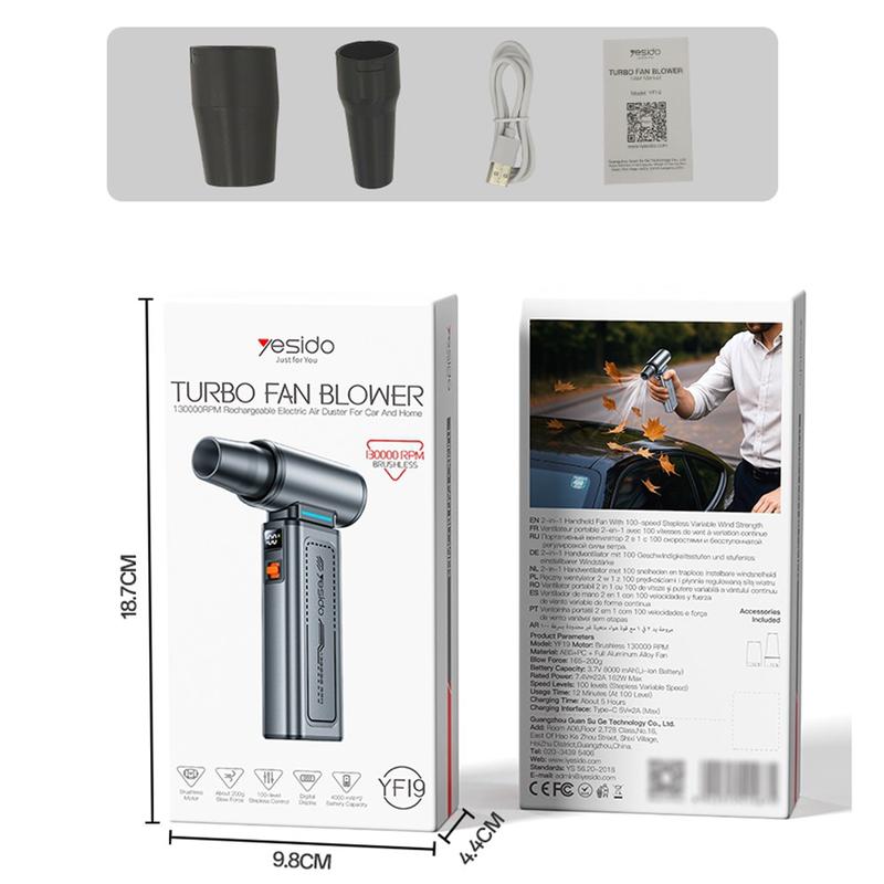 Yesido YF19 Handheld Fan / Dust Blower - 130000 RPM High-Speed Wireless Air Blower / Fan / Vacuum Cleaner