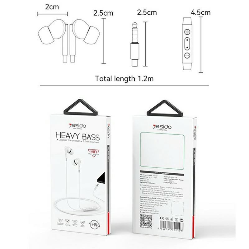 The Yesido YH46 3.5mm wired earphones are a solid everyday choice if you want clear sound, reliable calls, and zero-fuss compatibility. Built around a 10 mm dynamic driver with three-frequency tuning, they deliver balanced audio with crisp detail, natural vocals, and an immersive sense of space—great for music, podcasts, and videos. The ergonomic in-ear shape is designed to sit securely (even during movement), while the HD microphone helps keep your voice clear by reducing background noise. With a simple one-button in-line control and a universal 3.5 mm jack, the YH46 is an easy grab for commuting, work, or gaming.