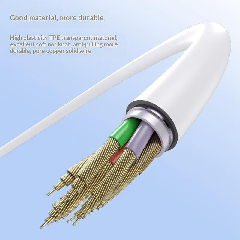 - Durable cable: elastic, tangle-resistant TPE with solid copper core wires for better longevity