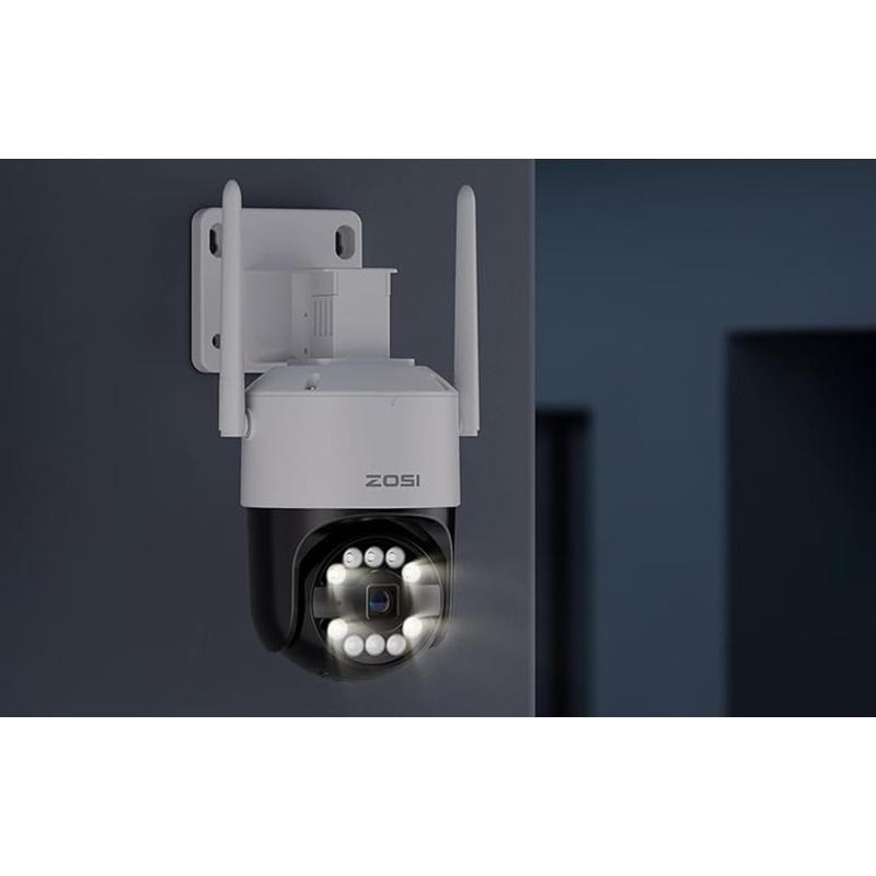 Secure larger outdoor areas with the ZOSI C296 Wi-Fi 8MP dual pan/tilt camera, built to deliver sharp detail, smart alerts, and flexible coverage in all weather. With 2880 1620 resolution from a 1/2.7 progressive CMOS sensor and a 4.0 mm F1.6 lens, it captures crisp images day and night, supported by infrared night vision up to 30 m. The camera s 355 horizontal and 140 vertical rotation helps reduce blind spots, while AI-powered detection improves alert accuracy with features like person detection, vehicle detection, face detection, and people tracking. Two-way audio lets you speak to visitors or couriers, and efficient H.265 compression helps save storage space. A 32GB microSD card is included so you can start recording right away.